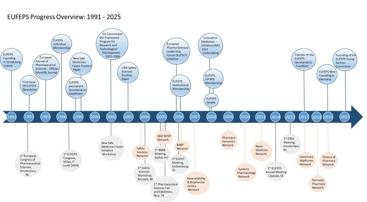 Before the inauguration of EUFEPS, the need for an independent, scientific European body to promote the interests of pharmaceutical sciences had been discussed for years. Also, there were scientific organisations established in several countries. In the invitation to a scientific meeting, held in conjunction with the 100th Anniversary of the German Pharmaceutical Society, in 1990, it was suggested that a European federation of pharmaceutical sciences associations should be considered. At the meeting, attended by representatives from Austria, Croatia, Czechoslovakia, Greece, France, Hungary, Italy, The Netherlands, Poland and Sweden, this idea was further discussed, and there was a general and enthusiastic agreement to proceed along these lines. A working group was formed, an important task of which was to prepare for a formal founding meeting in 1991.